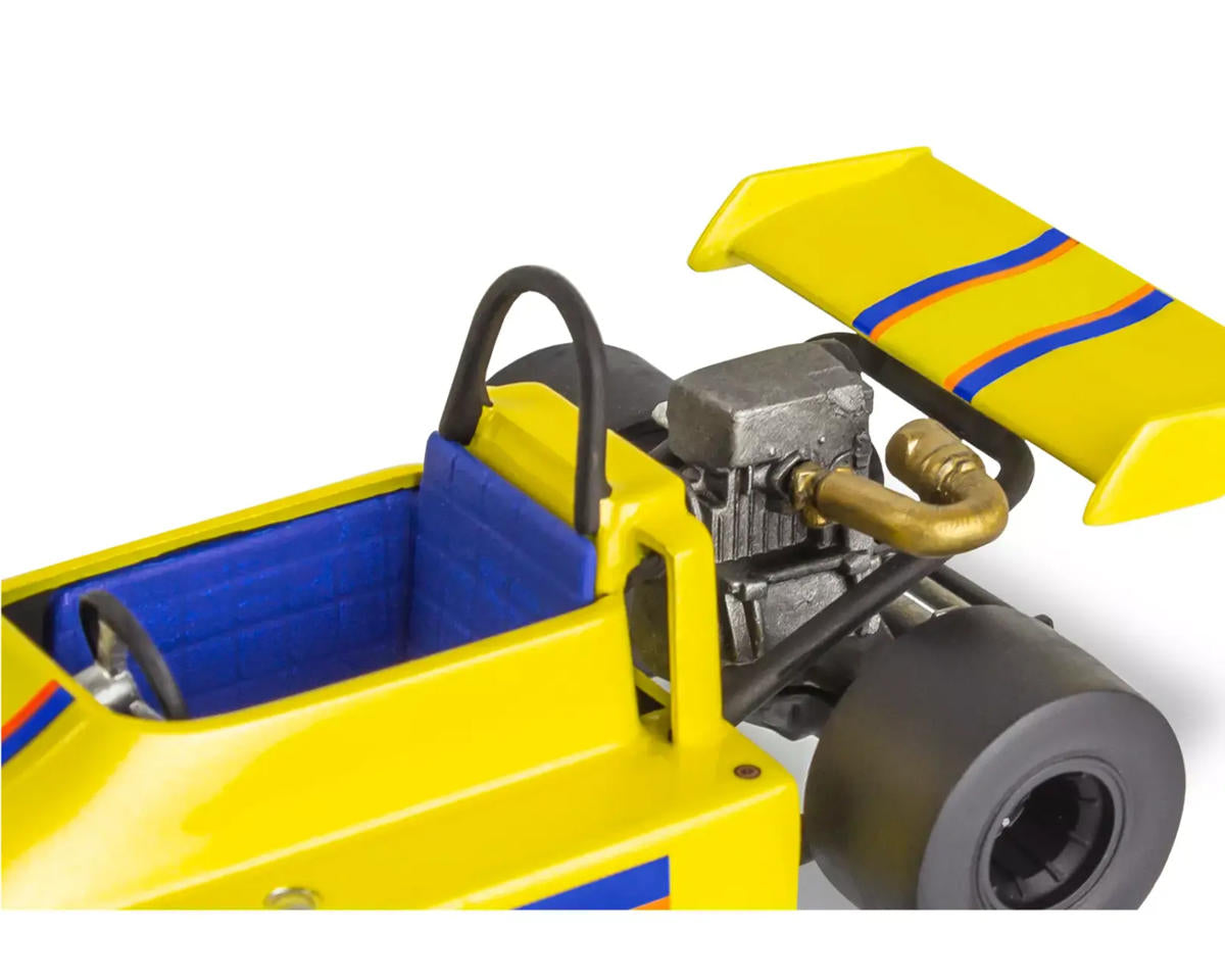 The Revell 1/25 ’78 Chevy® Off-Road 4x4 Plastic Model Kit combines rugged off-road style with exciting open-wheel racing detail. Featuring a customized 1978 Chevrolet K-20 Silverado Fleetside with flared fenders, opening hood revealing a 350-cid V-8 engine, and four-wheel-drive suspension on spoked off-road tires, this kit also includes a detailed Virage formula-style race kart with multi-piece engine, race slicks, and rear spoiler. A dual-axle trailer with movable loading ramps completes the set, while factory-correct decals and precise molding deliver authentic proportions and crisp, collectible detail for hobbyists of all skill levels.