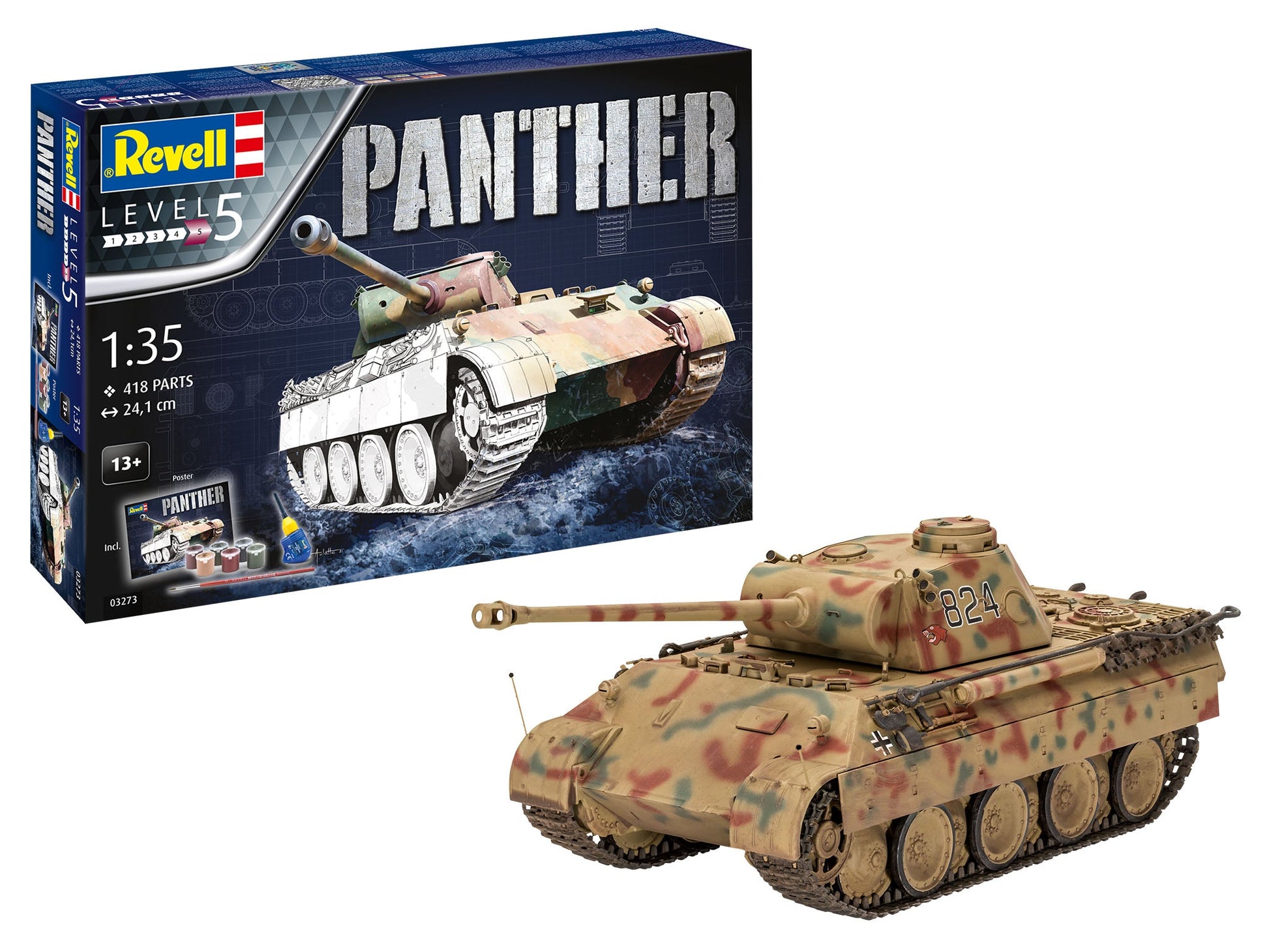 The Panzerkampfwagen V "Panther" was intended to provide an equivalent weapon to counter the massing Soviet T-34s. This was successful, as the Panther was superior to most enemy tanks by the end of the war. Even though it was never built in the masses as its main opponent, the T-34, it still has its place in military history. The kit includes the first production version version D, paints, glue and brushes and a poster.