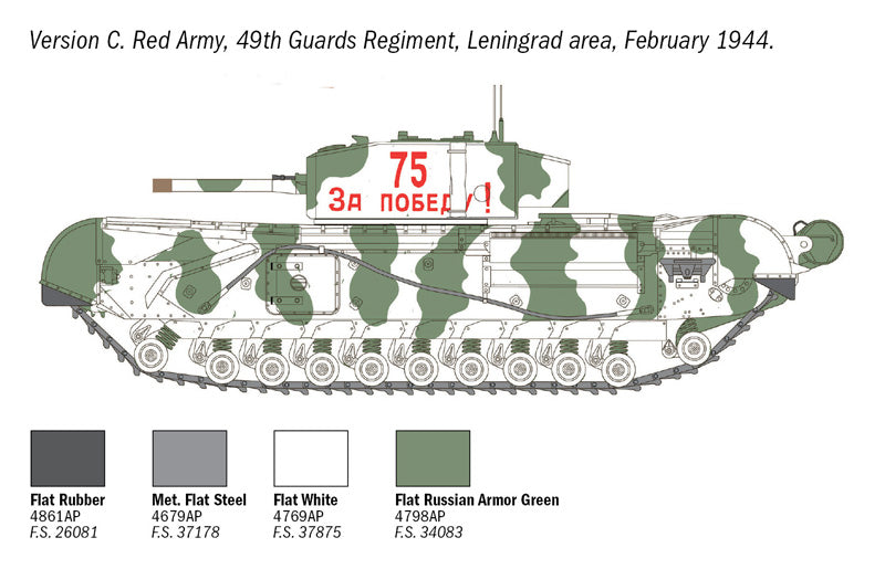 The Churchill medium tank came into service with the British Army in 1942 to support and replace the earlier Valentines, Matildas and Crusaders, which, by then, were all outdated and inadequate in terms of both armor and weaponry, easily falling prey to the more advanced German tanks. Equipped with thick armor and a reliable engine, it proved to be tough and dependable, later being produced in ever-more efficient, upgraded versions. Its chassis was also used as a platform for specialized support vehicles such as the mine clearer, the bridge layer and the flame-thrower.