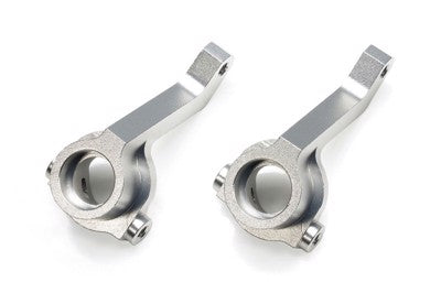 These aluminum front steering uprights can be used to replace the standard resin/plastic uprights on the BB-01 off-road chassis. Aluminum uprights provide increased rigidity and sharper steering response compared to the standard part. • Silver-anodized aluminum front uprights x2 • Right and left side components feature the same symmetrical shape. • Compatible with the BB-01 chassis