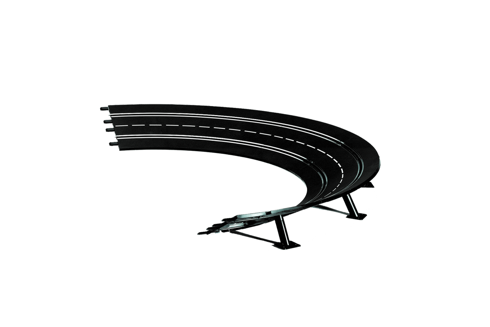 The scale of the track is 1:24, making it suitable for all race tracks on the same scale. Whether it is on the Carrera DIGITAL 124, Carrera DIGITAL 132 or the Carrera EVOLUTION race track, with this steep turn you bring action into every race.