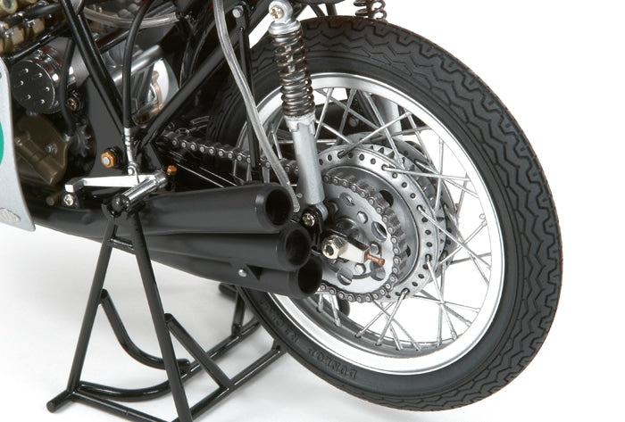 ★This is a 1/12 scale plastic assembly kit. Length: 166mm, Width: 43mm. ★Front and rear wheels feature highly detailed flat metal-plated rims and spokes to achieve a realistic finish. ★The air-cooled inline 6-cylinder engine features cooling fins which provide a great scale realism. ★One-piece cowling part helps reproduce bike's sleek form. ★Solid rubber tires with realistic tread patterns included. ★Photo-etched parts for brake drum air ducts, cowling snaps, and chain sliders as well as metal transfers for rivets are included.