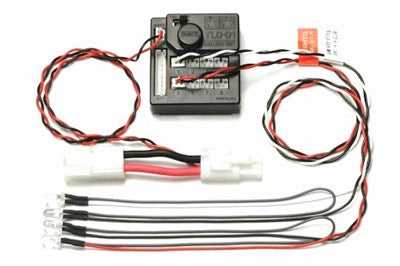 This LED light unit can be used to light up as many as 16 individual LED lights (8 sets). Perfect for adding LED lights to your R/C models, improving realism and amazing your friends. Unit comes with 2 red and 2 white colored LED lights. • Length: 1.59 (40mm) • Width: 1.70 (43mm) • Height: .85 (21mm)