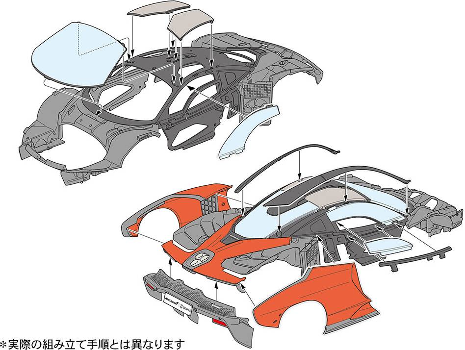 ★The complex, aerodynamically honed form of this supercar's body is accurately captured. ★Ease of painting is a core theme in the parts breakdown, with window frame sections molded onto the body, separate parts for seat pads, and more.