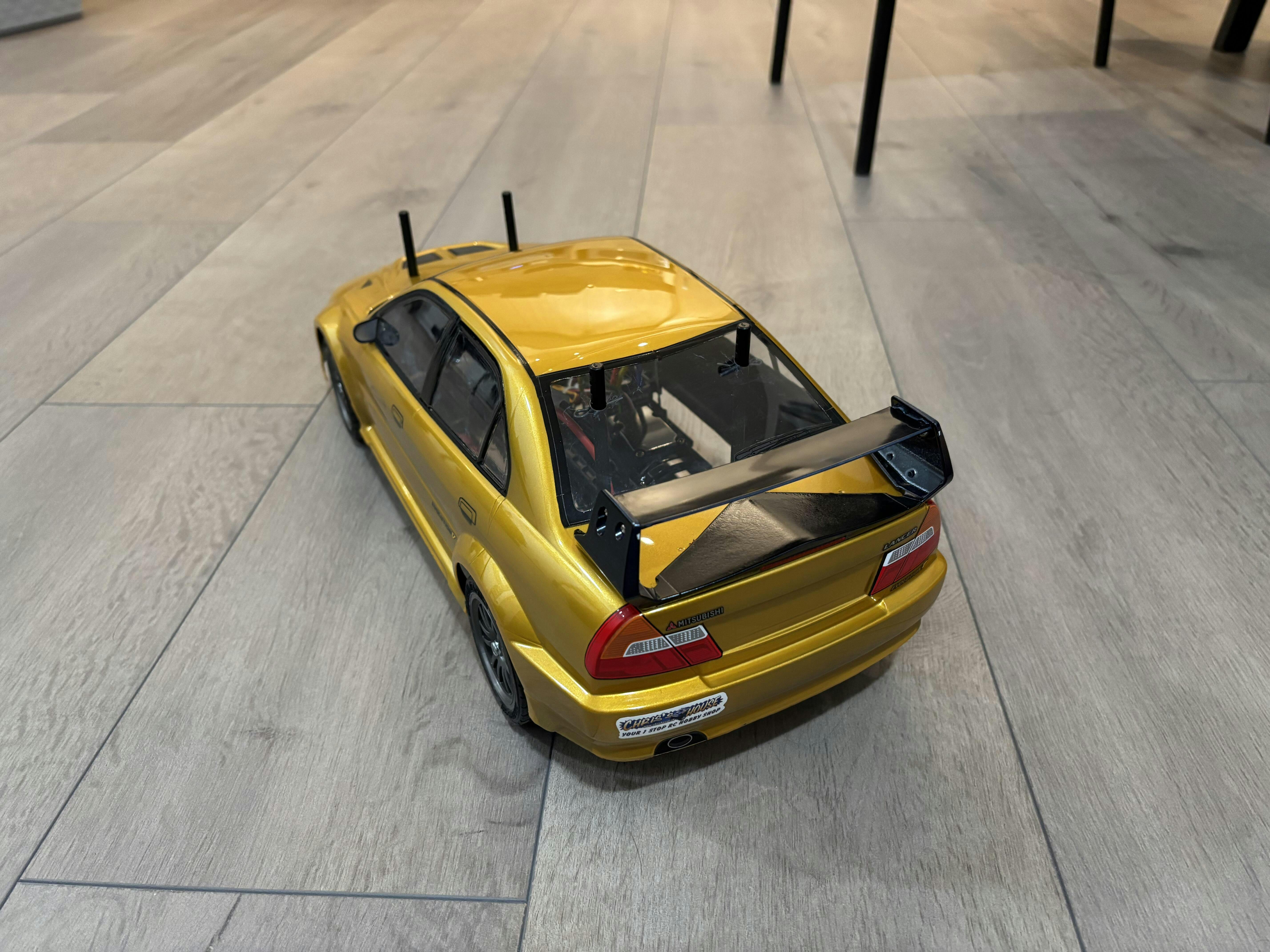 - Separate ABS plastic parts realistically depict side mirrors and rear wing.