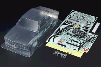 This PC body parts set from the 1/10 R/C Opel Kadett GT/E (MB-01) (Item 58729) includes Separate parts that depict the front and rear bumpers, light cases, spot lights and side mirrors. Includes marking stickers, and masking stickers for use during the paint job. Metal parts are also included for attachment. Compatible with 239mm (long) wheelbase MB-01 chassis cars. Comes in a smart, dedicated cardboard box.