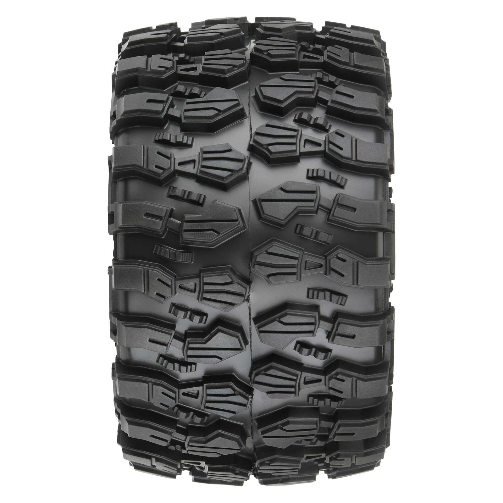 Pro-Line is bringing the extremely popular Hyrax rock crawling tread to the 1:10 Monster Truck scene with the Hyrax 2.8″ tire! Whether it is loose or hard-packed dirt, sand, snow, street, or gravel, the Hyrax 2.8″ tire is up to the task. The Hyrax 2.8″ tire was designed to have ultimate traction combined with long-lasting durability. Each tire lug is shaped to dig into whatever surface you are running on and is ultra-thick so that it is extremely durable.