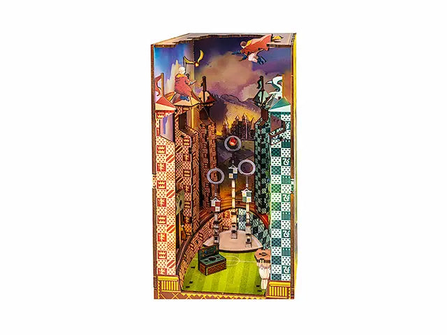 Tiny Adventures are Magical book Nook dioramas. They are ideal for any bookshelf. Use as a decorative insert between books or as a standalone model. Pieces are made from high precision laser cut wood and each nook has an LED lighting system. The "Tiny Adventures Quidditch Field" model kit brings the fascination of the Quidditch game from Harry Potter. This Book Nook is a detailed miniature world that brings the iconic Quidditch scene to life with 124 precision-crafted components. Features a highly detailed authentic recreation of the Quidditch field, including miniature players, goals and other details, a unique diorama is created Includes detailed building instructions for a smooth building experience, miniature figures of the Quidditch players in action, replicas of the Quidditch goals and other distinctive pitch elements. Width:11 cm, Length:18 cm, Height:23 cm. Ages 14yrs+.