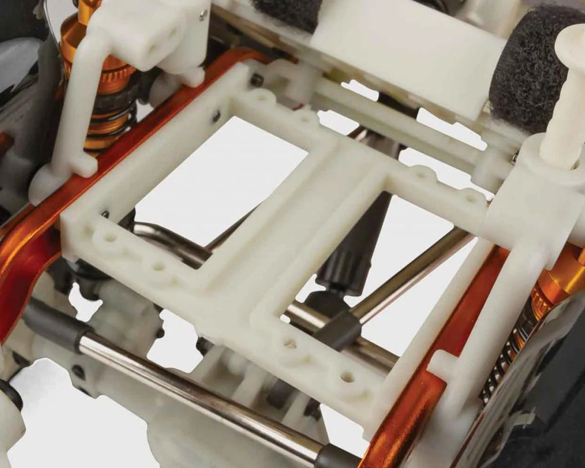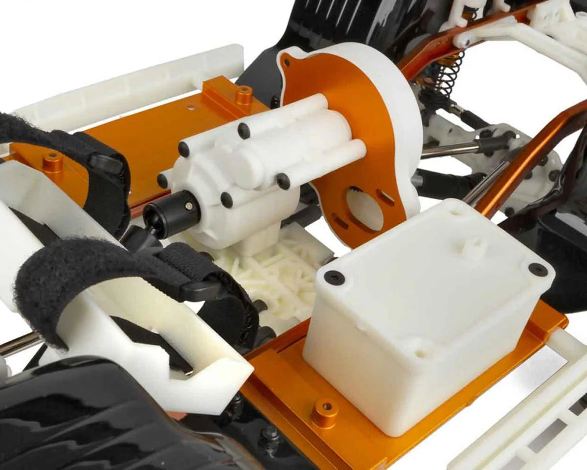The RC10 Trail Truck’s chassis includes a behind-the-axle (BTA) steering system and aluminum steering plates for improved approach angles and customization. The factory-integrated servo/servo winch mount adds strength and ideal weight distribution. Fluid-filled, anodized aluminum shocks help maintain the vehicle's stability, even on the most challenging trails, making the truck a capable and reliable crawler straight from assembly.