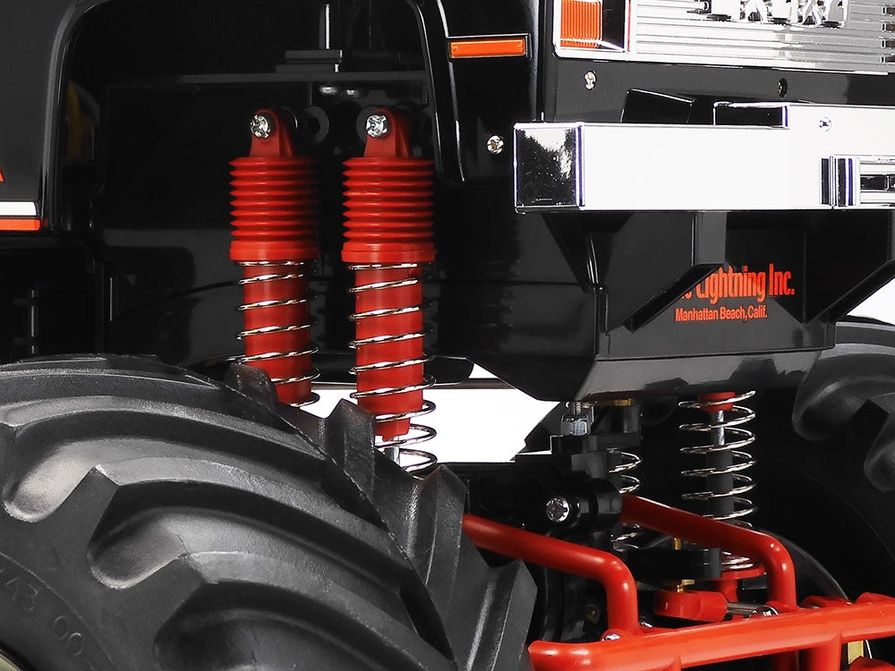The Super Clod Buster is equipped with two motors and tightly sealed gearboxes that have been molded as one piece with axle housing. Minimum power loss and smooth cornering are obtained thanks to gear train transmission and differentials. The included Dual Motor ESC provides ample power to get your truck over obstacles. Furthermore, this monster truck is also equipped with a 4WS system for 4-wheel drive steering. This feature makes tight cornering with such a big machine easy!