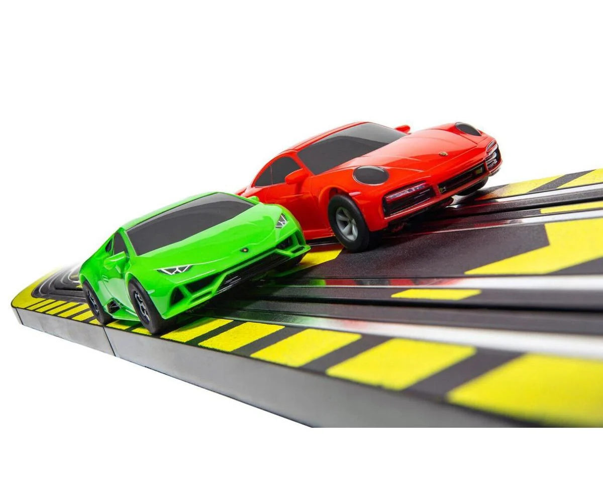 The Scalextric Micro Super Speed Slot Car Track Set delivers high-speed thrills in a compact, action-packed format perfect for beginners and racing enthusiasts alike. This set lets you stage a supercar showdown between two of the world's most iconic performance vehicles, the Porsche 911 Turbo and the Lamborghini Huracan EVO. Designed for quick setup and exciting play, this set is an ideal introduction to the world of slot car racing.
