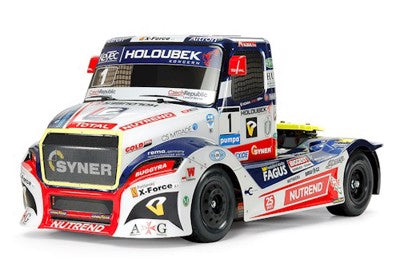 The realistic body is a 3-piece set made from lightweight and durable polycarbonate, with separately molded plastic side mirrors, coupler and rear bumper parts. The TT-01 Type-E chassis is a proven performer, and this chassis is fitted with dedicated semi-truck wheels and tires for the model.