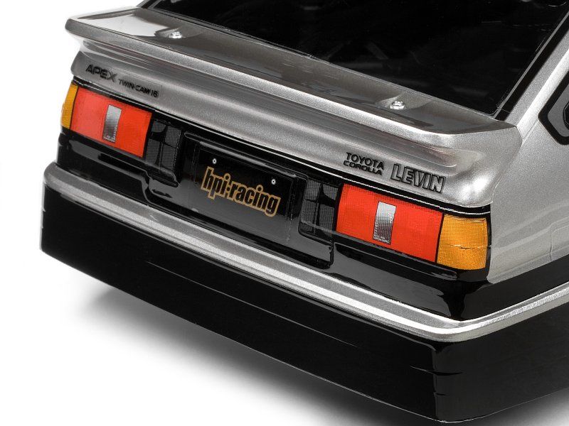 Like all HPI bodies, the Toyota Corolla Levin comes with a clear protective overspray film, window masks and a large decal sheet. Made of flexible vinyl to fit every curve on the body, the decal sheet includes official Toyota & HPI decals, headlights, tail lights, and door handles, plus official HPI Racing logos! The body also has drill locations marked for HPI Cup Racer cars, making it easy to line up the body mount and antenna holes.