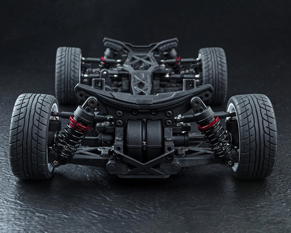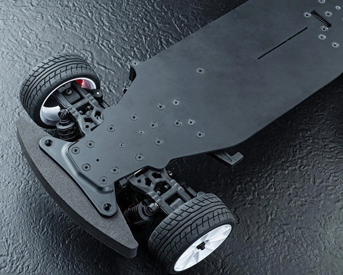 Constructed on a highly rigid carbon fiber composite chassis, the XXX-R Classic provides a stable and lightweight foundation that enhances handling consistency and cornering control. The mount suspension system is paired with oil-filled threaded shocks that allow precise ride height and damping adjustments, while multiple shock mounting positions enable drivers to fine-tune suspension geometry to suit different surfaces and driving styles. Fully adjustable camber, caster, and toe settings offer extensive tuning potential for optimized tire contact and steering balance. The slide rail steering system includes two Ackermann degree settings for customizable steering characteristics, and the ball differential system ensures stable, linear throttle response with excellent sensitivity through curves. Combined with high-traction racing tires and realistic multi-spoke wheels, this setup delivers confident grip, sharp handling, and impressive overall on-road capability.